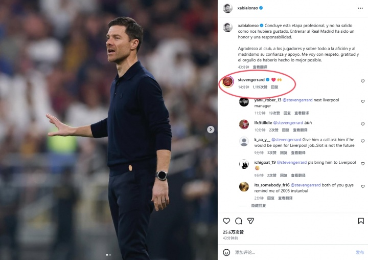 阿隆索社媒告别皇马+杰拉德评论,球迷热议:来执教利物浦吧 xiaoqiao 2026-01-26 nba 82 0 01月13日讯 今日哈维·阿隆索在社媒告别了皇马,昔日利物浦队长杰拉德评论道:❤️🙌。评论区下的球迷热议↓下一站利物浦给他打个电话,问问他是否愿意考虑利物浦的帅位……斯洛特不是长远之计。求你了,把他带到利物浦