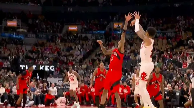 欢迎来到芝加哥!西蒙斯迎着莺歌的长臂命中公牛生涯首分